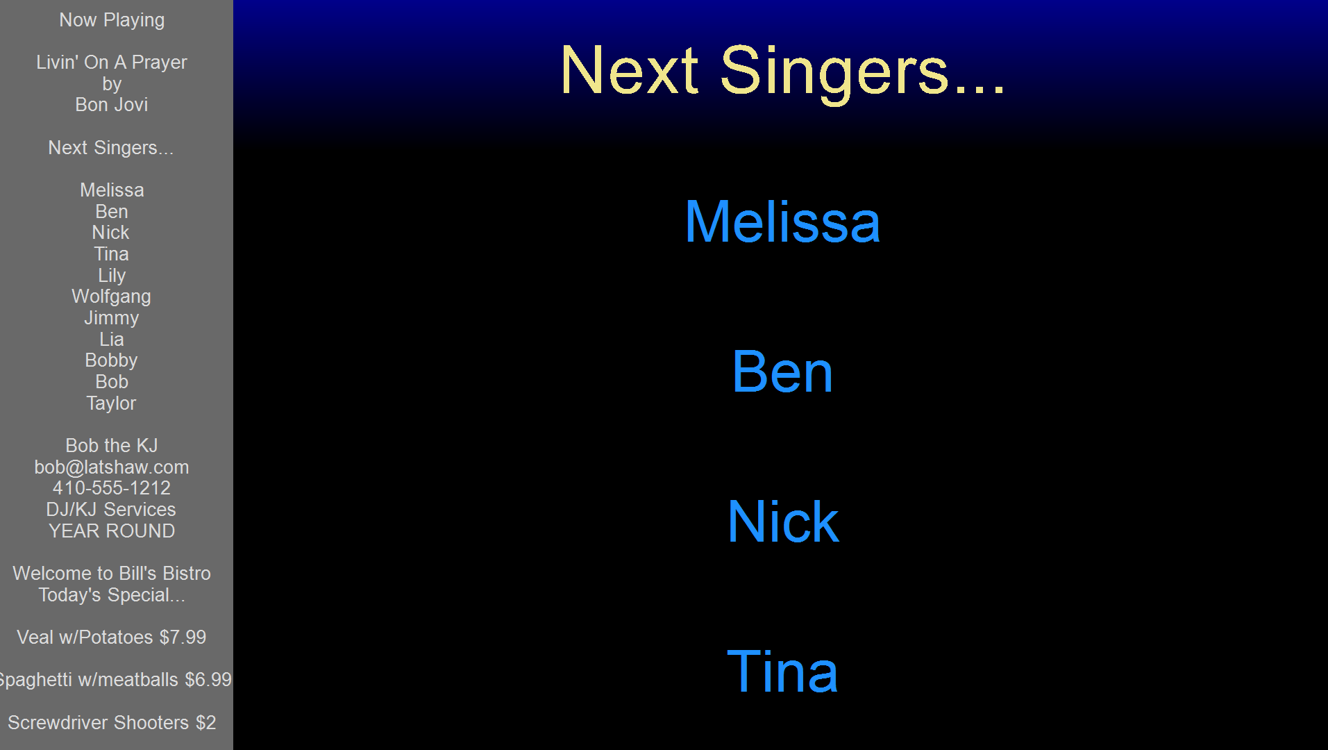 Here's a YouTube video of moving the dock position, change sizing in real time, and color changes. The demo uses standard def video, which is more square like a CDG or MP3+G graphic. However, even if you use high def videos and karaoke videos with a 16:9 scale, they will all autosize in proper proportions.