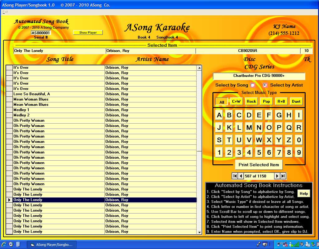 I wish I could simply post my catalog online, and all my patrons could browse my collection.. or forget that.. i'd rather run Kjams on my Macbook Pro and let all my customers simply login to my virtual server via WiFi and browse my catalog AND submit their song requests via the available kJams iPhone App