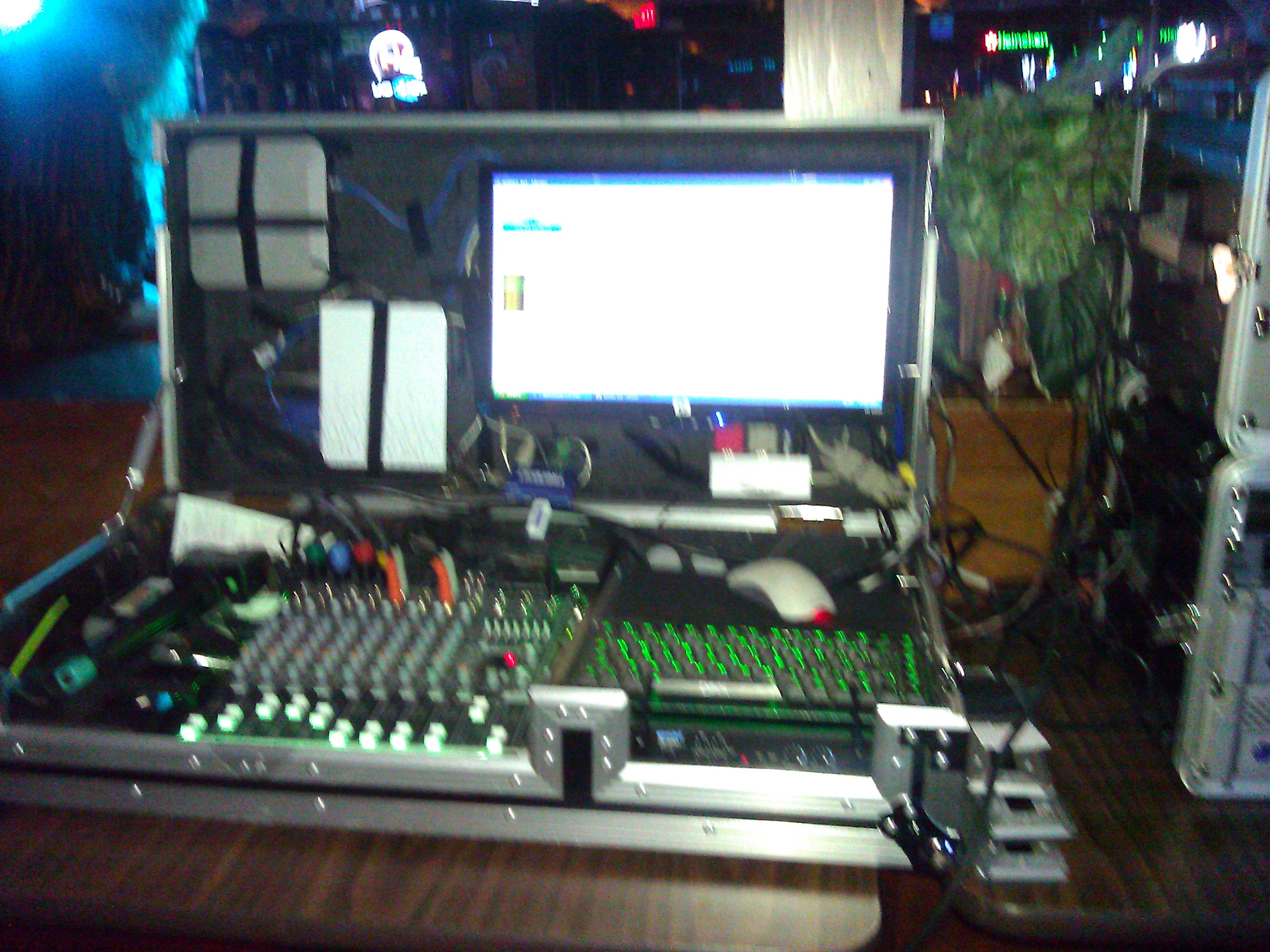 I have been working on a cart design. The cart rolls of course, and is six feet long and 30" wide.. The speakers mount like they do on tri-pods, but they are on swing arms that swing in when travling between gigs, and then swing out when at the gig. Picture goal posts with speakers on them. The speaker arms would also extend for a wider spread between speakers. The rack with the elecrtonics would mount on one side of the cart, and then a small table would mount from the rack to the other end of the cart to place your computer on if you use a lap top, or you could mount your pc tower under the table, and have your keyboard and monitor on top of the table. You could then use the remaining space under the table to mount a drawer system of some sort, or a box to put your books and mics in, or whatever. This system couldn't be used in all venues, but it could be terrific in others.