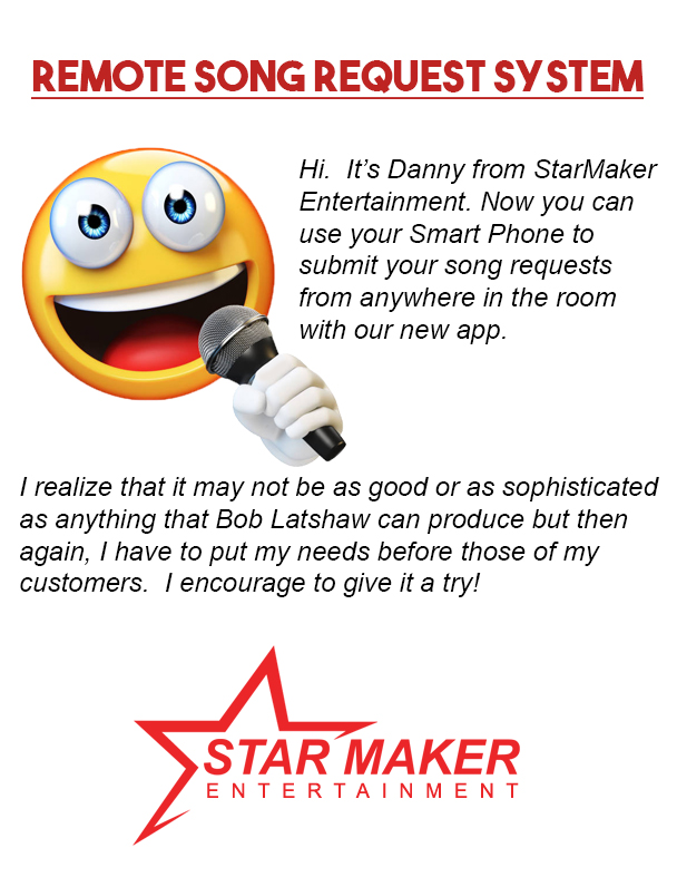 Bob Latshaw wrote: First of all, let's speak the same language. If they're doing it all from their phones then it's not a "kiosk". A kiosk is a something that is stationary. If you're using anything that's stationary for many people to use, you need to ditch that part. Like I said I used to use the Tricerasoft Super Remote Request Tool, which was a kiosk. I used to set it up and my singers would go to the kiosk to send in their requests. Now I use Siglos Karaoke Pro with its integrated wifi request. It "IS FREE" because I had a router that I wasn't using and I bring it with me and just plug it in and it's up and running. The server is built into the hosting program so there are no additional costs. Bob, I know you don't like remote request features such as using a kiosk or in the case of Karaoke Pro, a wifi request system. That's one reason why I would never buy your hosting program. But, that's my choice and I respect those that do buy yours because it's not my money, they are spending their own. Bob Latshaw wrote: Why make them take the extra step of connecting to your special network and open them up to hackers (or give them a long encryption passcode to type in)? You work for the singers. Not the other way around. That's also a lot of extra work for singers who worked all week and are currently drinking to forget their troubles. The best KJs want to make their singers job as easy as possible. Sounds like you're not interested in making that happen. My long encryption passcode for my singers to log in is 1 2 3 4 5. Wow that is long and complicated. When I used to use the Tricerasoft Super Remote Request Tool it required a longer setup, however "EVERY" time I chose not to set it up I would have a bunch of singers come up and ask what happened to the kiosk and can I set it up. Naturally I would set it up because my singers wanted it. With Siglos my singers are even happier because they can now search for songs and submit their requests from their seats. They don't have to look at books in a darken room and bring their request slip up to me. Those days are long gone. I believe using their phones is a more convenient way for them to submit a request. Bob Latshaw wrote: Our cloud based songbooks at SongbooksLive.com are far cheaper and easier for you and the singers, and only costs $29 a year (FAR less than you've ever spent on your system). Most KJs take the songs as people come up to sing, but if any of your singers want to be queued up ahead of time, they can use virtual slips at SingNext.com and those will cost you less than a dollar per show. Again, far easier and cheaper than your system. Even if you had shows 7 nights a week, you still would spend less all year than what that extra server costs you, and you (and your singers) would have done a LOT less work.