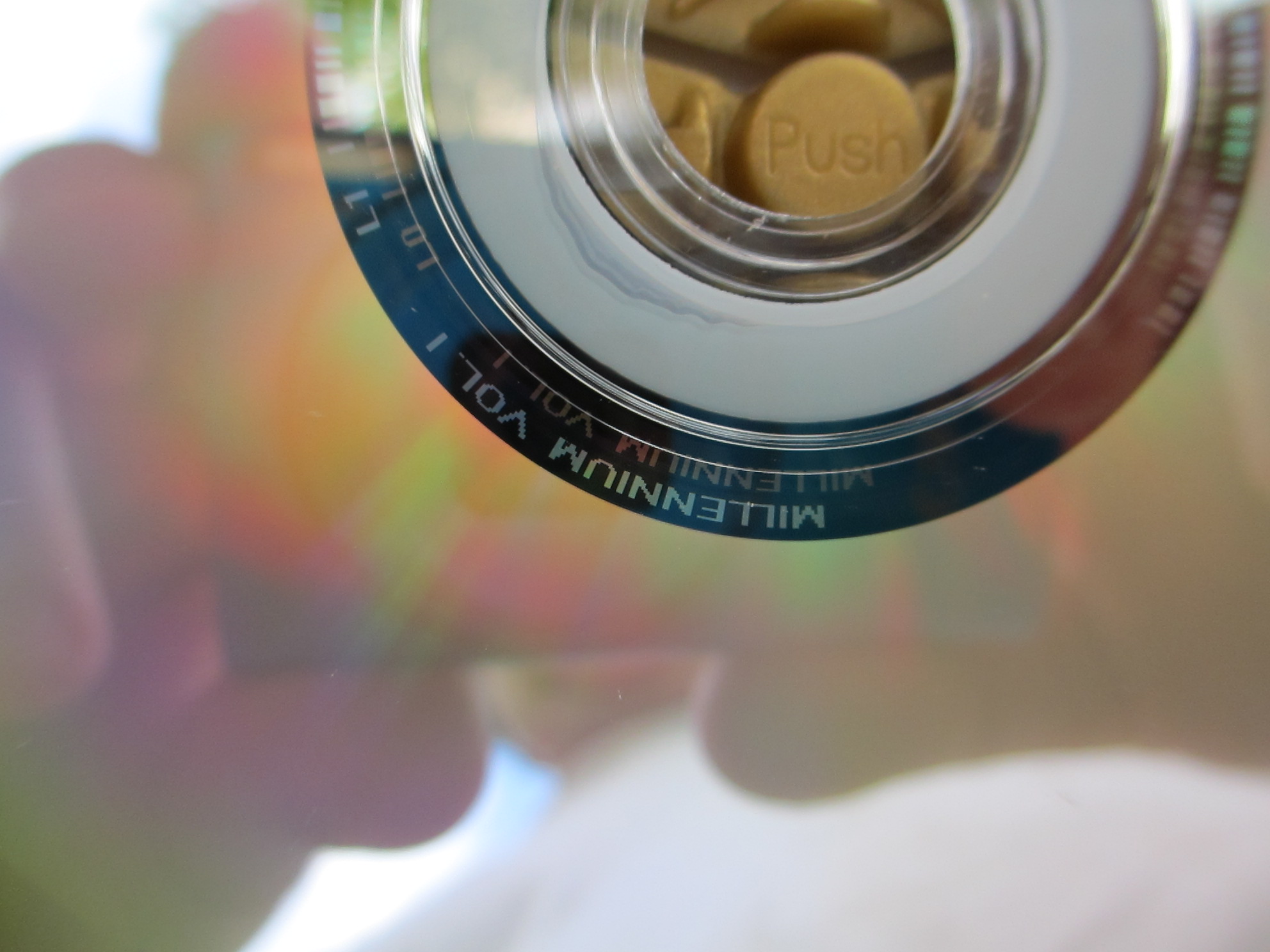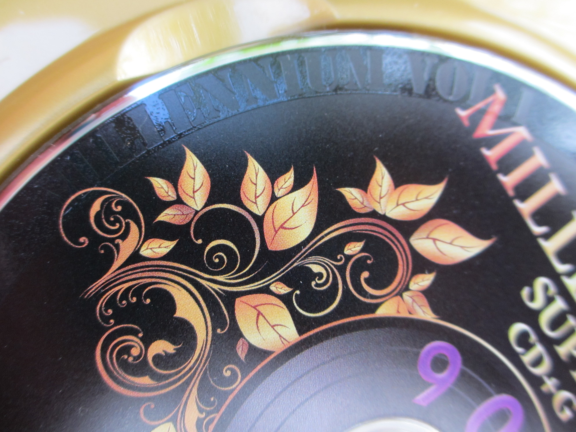 1. A very professionally designed clam shell case with beautiful graphics. 2. You get a very legible and high quality song book listing all the track #'s, songs, and artists on the disc. 3. Look at the Hight Quality silk screening job on the front of the CD. 4. Now look at the back. First the color is silver. Second, notice the watermarks on the outer disk edge. 5. You cant see it but around the inner center is numbers.