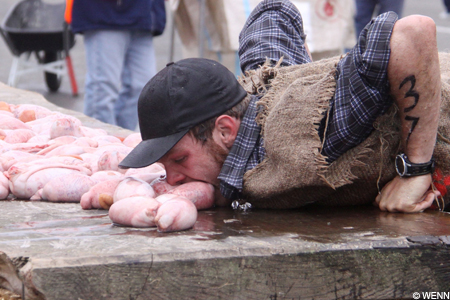 It could only be the annual Shepherd's Shemozzle in the small town of Hunterville, where men are men and men eat bulls' testicles.