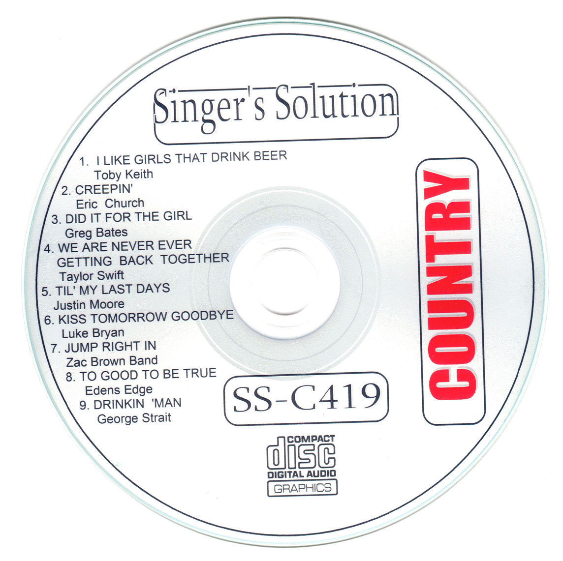 Lonman wrote: Brian A wrote: Got an email from karaoke bargain for Sep pop & country, 2 cds for $18.99. Good deal except I’m a little leery about the manu brand. Singer Solutions? Never heard. I have a feeling it’s a name change because they use to carry Fast Tracks or Quick Tracks, and most (not all) of their tracks are stinkers. http://karaokebargain.com/september-201 ... -5922.htmlGreat tracks. Many of those get sung. Give it a shot, if they are burned, then you'll know! I bought one disc from a karaoke store that was a burn called Rebel Sync. Bought who I thought was a reputable company until they and several of their alias companies got nailed for selling illegal discs. Well, here it is, Lon. Got it today from karaokebargain.com. Looks like a burn. Silver cd, no inner ring code marks front or back, no fancy fonts or background. Inkjet printed. No wonder, it only cost $10 free ship. A regular requested 2 songs off this cd, I’ll just give it to him. Can’t keep fake lookin' cds, song arrangement passable some really sound decent.