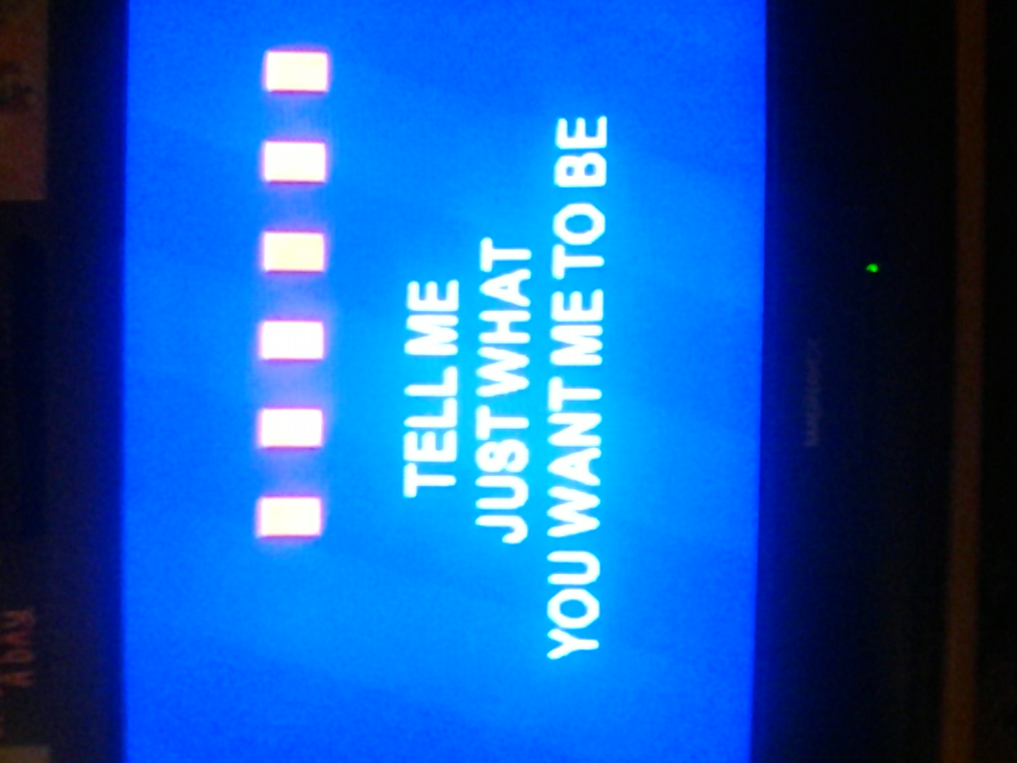 House Party Karaoke stills. Bad pics but blue background. Ldtters chsnge from orange to white.