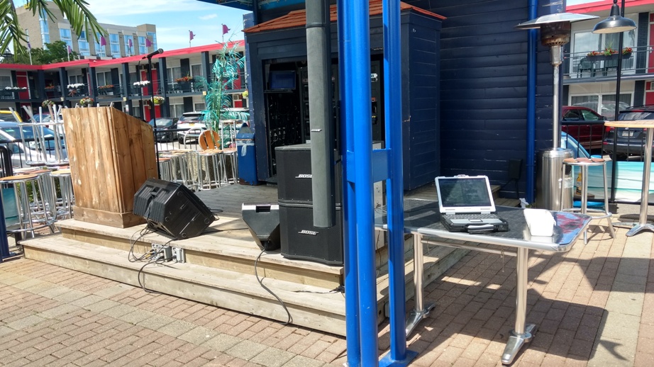 They also have 14 tv displays hanging at each of the poles surrounding the patio for those who prefer looking up or forward or wireless mic travel. it's good to have one for the stage.