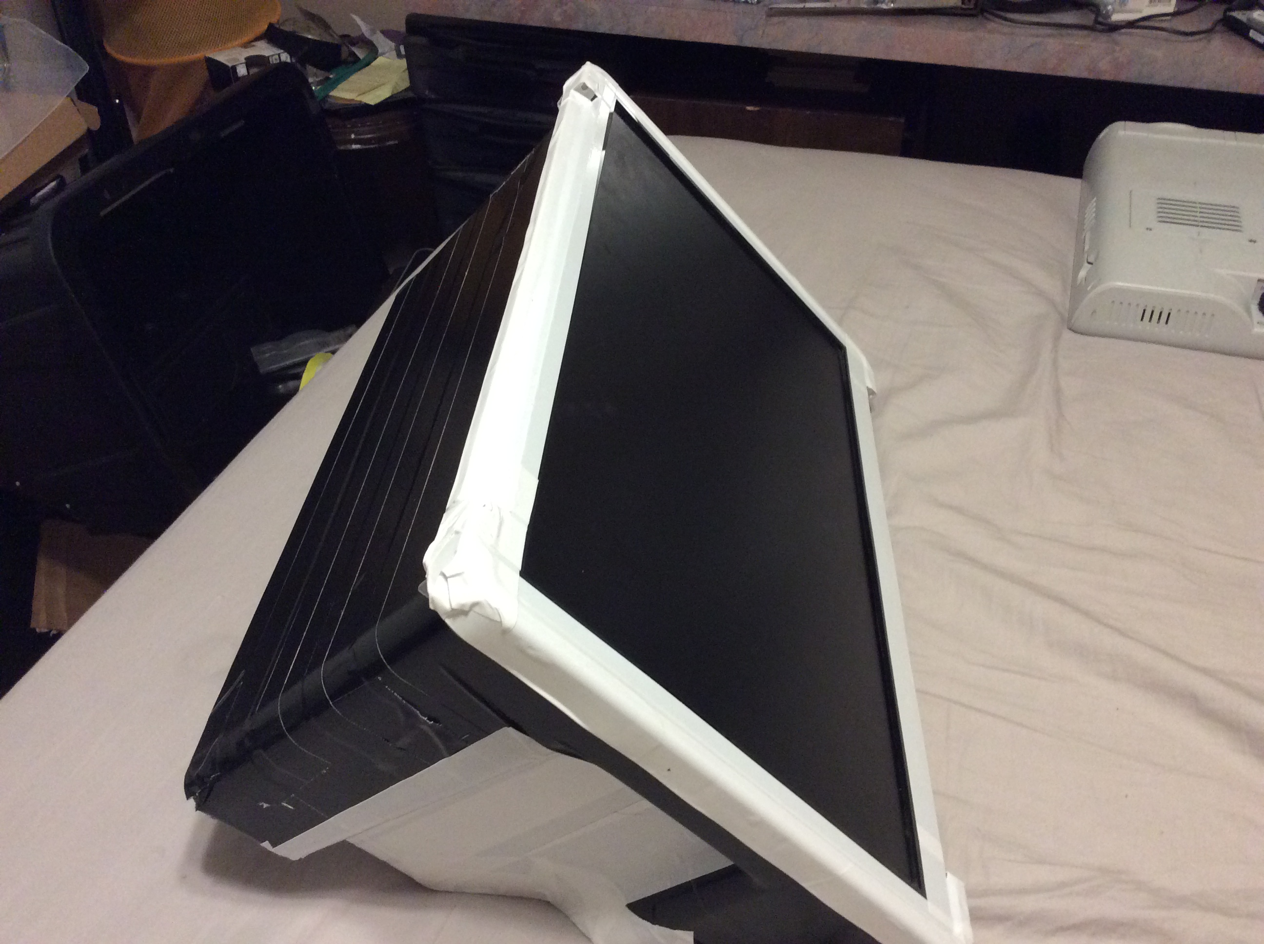 karaokeniagarafalls wrote: Due to heavy rain, the stage display kinda' got fried the other day and couldn't believe the prices when I went shopping for one. So I put together a do-it-yourself project using an old speaker cabinet along with a 24" led tv and duck tape. Wah Lah!