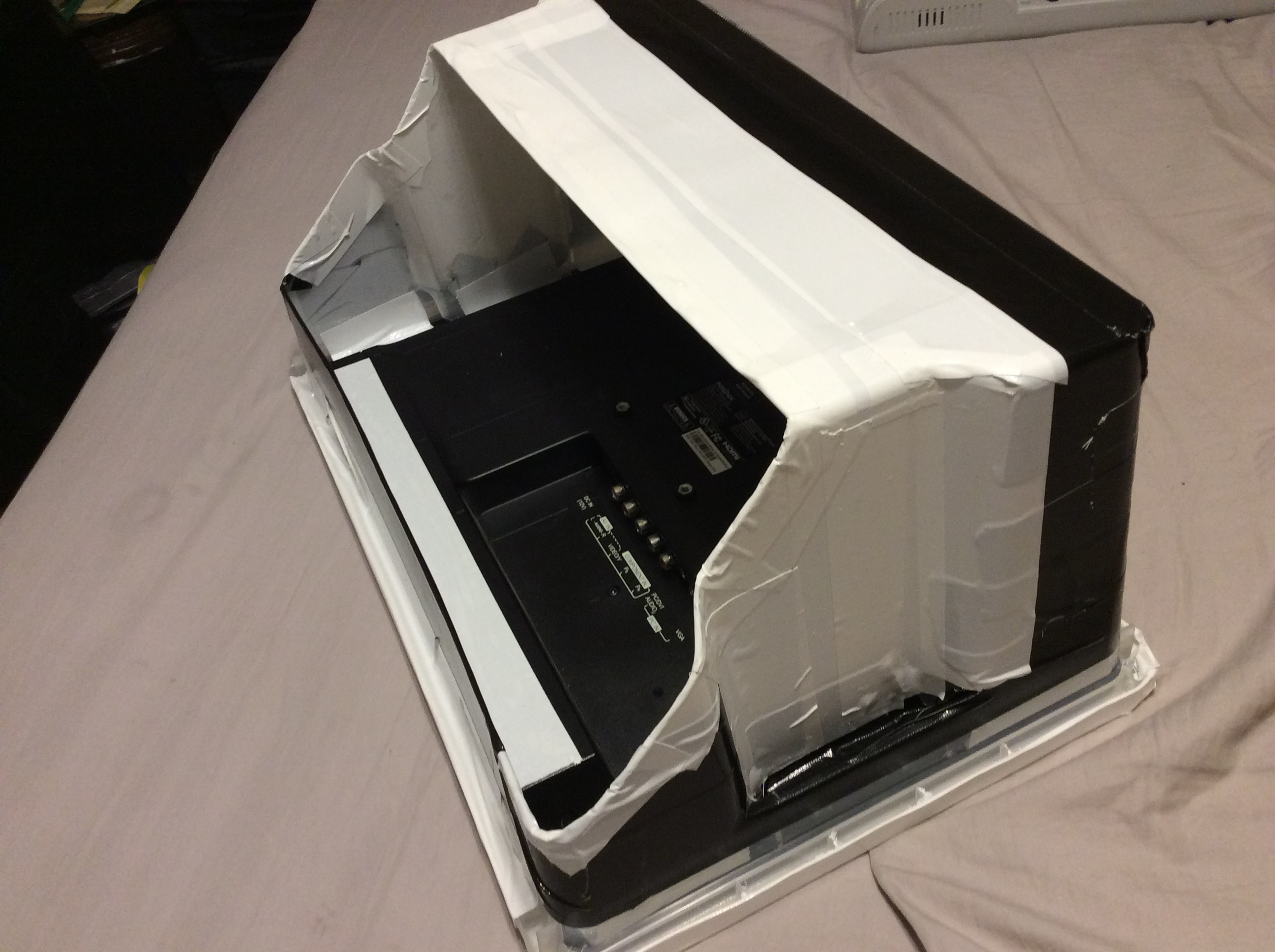 Due to heavy rain, the stage display kinda' got fried the other day and couldn't believe the prices when I went shopping for one. So I put together a do-it-yourself project using an old speaker cabinet along with a 24" led tv and duck tape. Wah Lah! Attachment: