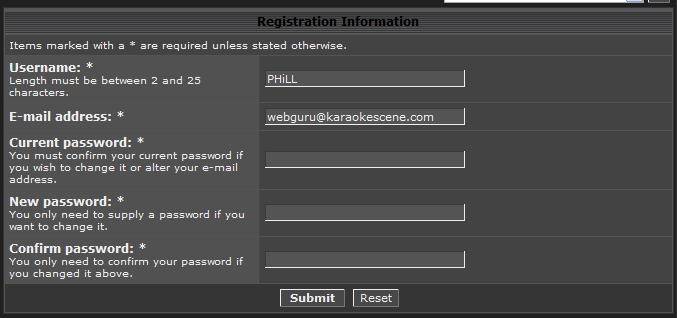 yes, i have verified that a correct and working e-mail account is registered with karaokescene .com, as well as with singershowcase.com