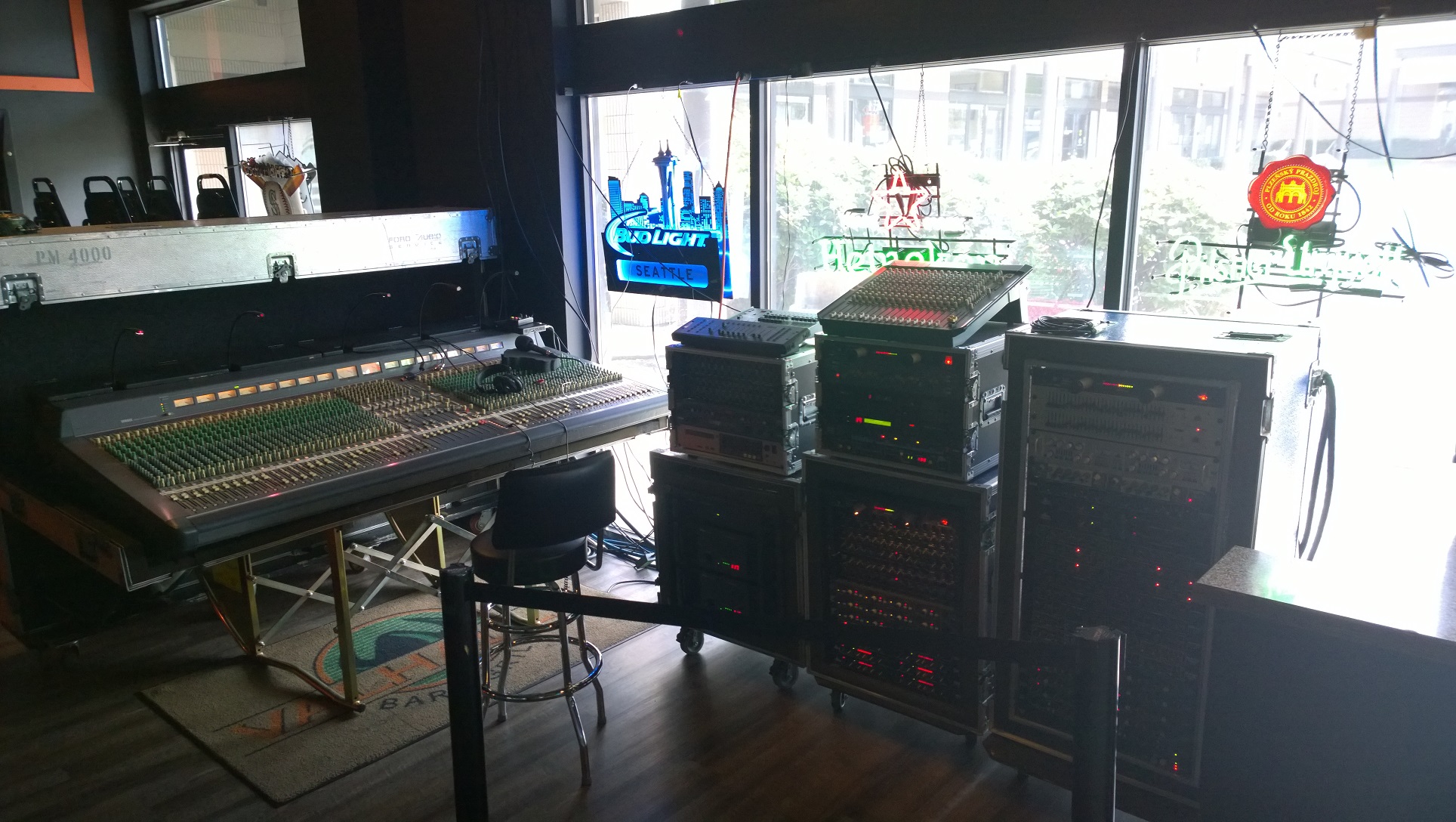 I REALLY want to keep this gig! The owner of the venue is a professional sound engineer that also runs a recording studio. There is a REAL stage with an amazing sound system that we get to tap into for karaoke. (see pics)