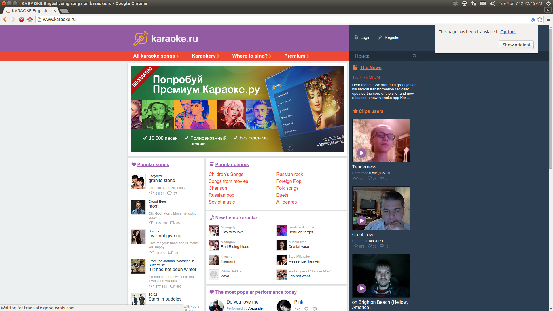 Anyway.... He and his wife are Russian. They want Russian karaoke because they have a lot of friends in the area that are also Russian and they want to be able to accommodate them along with English karaoke.
