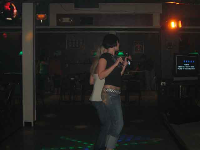 That big projection screen at the back of the stage works, too. The only reason I don't use it is I'm afraid singers will stumble back into it and rip it. I guess if I put a table against the back wall, they would not fall into the screen and have a place for drinks and props. I don't want to put karaoke lyrics on it (I want the singer to be the only person who can see the lyrics so if they screw up a little, no one notices) but I could use it for something. Pictures of guests, rock stars, caption with drink specials, whatever. All I really need to do is run a cable to it and buy a second TV converter.
