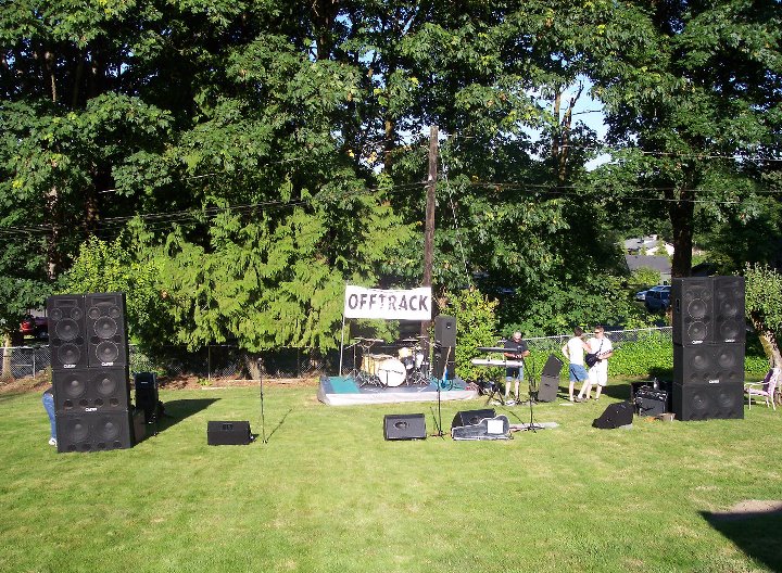 just my opinion. I can count on one hand in the few years i've used Hoster that it's actually shut down on me. When I really was having troubles is when my motherboard & hard drives were failing. I've heard from some users here that their software can crash up to 5 or 6 times a week - which is completely unacceptable IMO. But if I had to carry it all again, I would still roll the coffin, I will ALWAYS offer a player for custy discs and back up purposes and not worry about a second laptop. Honest engine! What I use in a mobile show is sometimes as much as what a band uses. As a matter of fact here is a pic of the complete speaker system I have used for both karaoke & bands, this is obviously a band setup. Usually for karaoke it's just two of the tops & 1 (maybe 2) dual 18" sub, a full amp rack (3 2000 watt amps) & effects rack. 1 more cd coffin isn't going to be an issue.