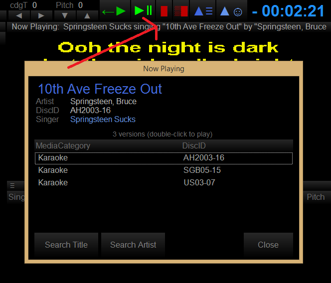chrisavis wrote: I use Song List Generator by Latshaw for song books. It filters out dupes to help keep books small. I keep all dupes on the drive for the same reason most of you do - sometimes people want a specific version. This last weekend someone requested a Springsteen track I had never heard at karaoke before. I only have All-Hits, Sweet Georgia Brown, and Ultra Sonic versions of the track. I had no clue which version was best so I chose Ultra Sonic just because I don't think I have ever listened to a US track. The singer didn't like it and asked for the All Hits version which I was able to use the "Now Playing" panel in Karma to find al versions of the same song and immediately change it for them -Chris I have used the "now playing" dozens of times. One night a singer asked for La Bamba and when I played it he asked for an English version. I tried 5 versions, one right after another, using "Now Playing" before he was finally convinced that they are ALL Spanish. The beauty of it was that it didn't waste much time showing him. GREAT feature