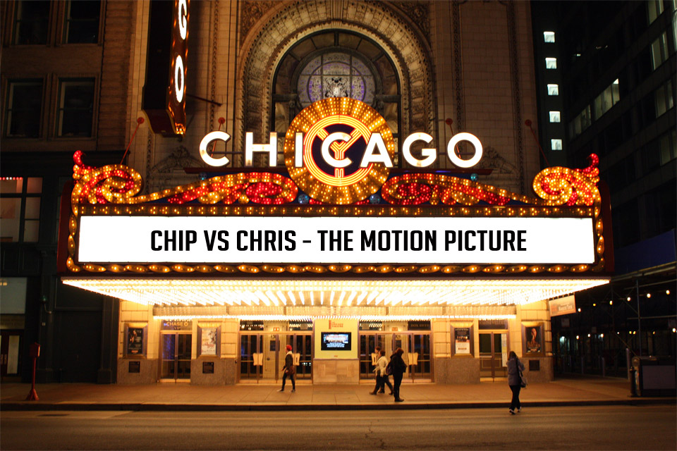 To take your idea a little further... A Major Motion Picture Announcer: In a world of great despair... two men must come together to save the karaoke industry from it's demise... two men whose lives will be changed, forever. Universal Pictures proudly presents... Chip VS Chris - The Motion Picture Based on a true story. Starring Chip Staley, Chris Avis and special guest appearance by Jim Harrington. Filmed on location at PEP Entertainment Studios